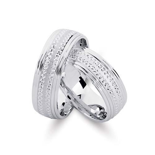 Særlige Nuran vielsesringe i rhodineret sølv med prikmønster