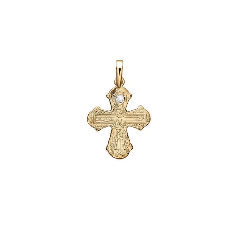 Vedhænget er udført i smukt 8 kt guld, og måler 14x16 mm – en elegant størrelse med plads til fine detaljer. I midten glimter en 0,03 ct laboratoriefremstillet diamant, som tilfører et eksklusivt og moderne præg uden at gå på kompromis med korsets ikoniske æstetik. Overfladen er udsmykket med nøje udførte graveringer, der løfter det klassiske Dagmarkors og understreger de særlige symboler. Smykket har en raffineret og betydningsfuld fremtoning, som gør det oplagt til barnedåb, konfirmation eller andre store anledninger, hvor tradition smelter sammen med nutiden. Med Aagaard får du stoltheden ved et design, der balancerer solidt håndværk og ægte materialer – perfekt til både daglig brug og som et varigt minde fra livets særlige øjeblikke.