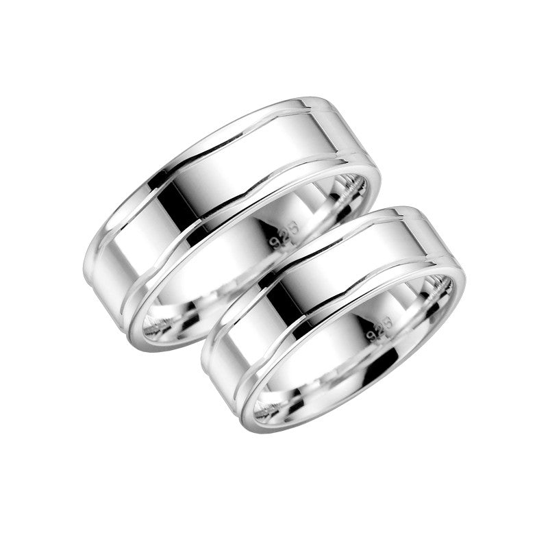 Tidløse Aagaard vielsesringe i blankpoleret sølv med mønster, 7 mm