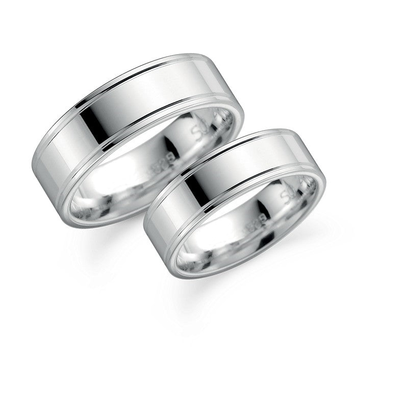 Unikke Aagaard vielsesringe i blankpoleret sølv med linjer, 7 mm