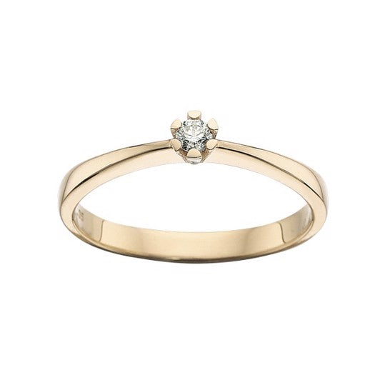 Vida diamantringen er udført i smukt 8 kt. guld med en funklende diamant i midten, som fanger lyset og blikket med sin diskrete glans. Diamanten er af den anerkendte Wesselton/P1-kvalitet og fås i flere forskellige størrelser, fra det fine og delikate 0,03 ct. op til et mere markant 0,30 ct. Vida-seriens enkle og klassiske udtryk gør ringen velegnet for dig, der værdsætter et rent og tidløst design – enten som kærlighedssymbol eller en gave ved særlige lejligheder. Stilen er elegant, underspillet og passer til både det moderne og traditionelle smykkelook.