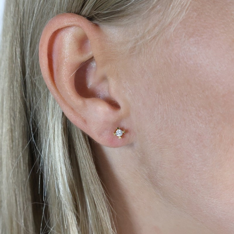 Denne smukke ørestik i 8 karat guld prydes af to funklende, lab-grown diamanter, der hver vejer 0,10 eller 0,20 carat. Diamanterne er slebet, så de opfanger lyset på smukkeste vis og giver et raffineret, men stadig underspillet udtryk til dit look. Ørestikkerne er ideelle for dig, der ønsker at tilføje et eksklusivt og tidløst smykke til både hverdag og fest. Med deres enkle og klassiske formsprog passer de til enhver alder og stil, og de er oplagte som gave til en særlig anledning eller som forkælelse til dig selv.