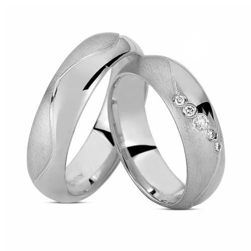 Unikke Nuran vielsesringe i 14 karat hvidguld med 0,09 ct diamanter