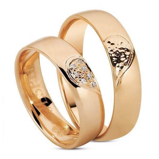 Romantiske Nuran vielsesringe i 14 karat rosaguld med halvt hjerte og 0,05 ct diamanter