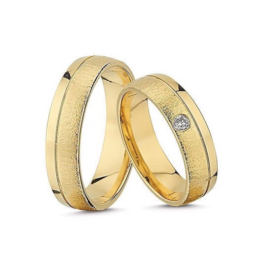 Unikke Nuran vielsesringe i 14 karat guld med 0,07 ct diamant og todelt overflade
