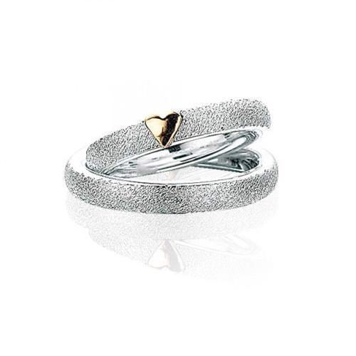 Romantiske Scrouples vielsesringe i sølv med 14 karat guldhjerte, 4 mm