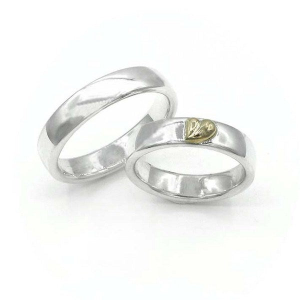Unikke Scrouples vielsesringe i sølv med 14 karat guldhjerte, 4 mm