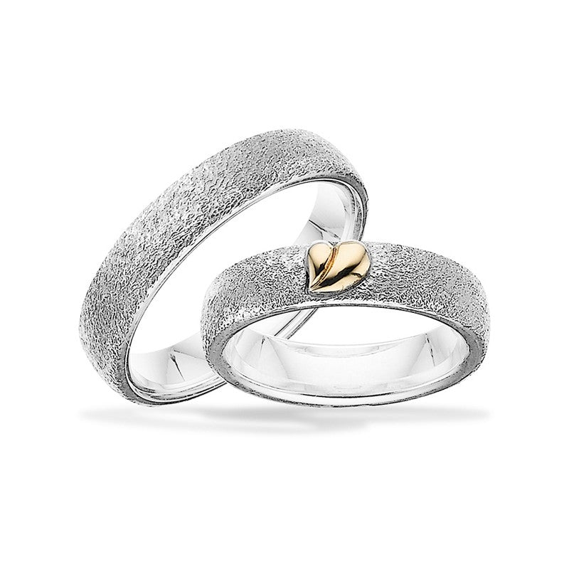 Romantiske Scrouples vielsesringe i sølv 4 mm med 14 kt guldhjerte