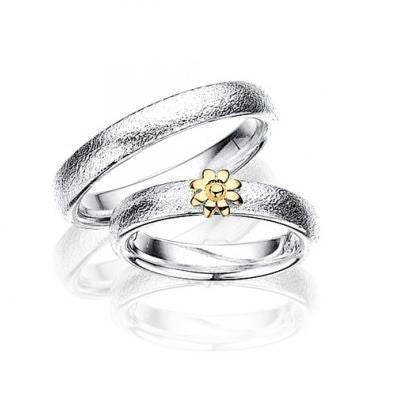 Unikke Scrouples vielsesringe i sølv med blomst i 14 karat guld, 4 mm