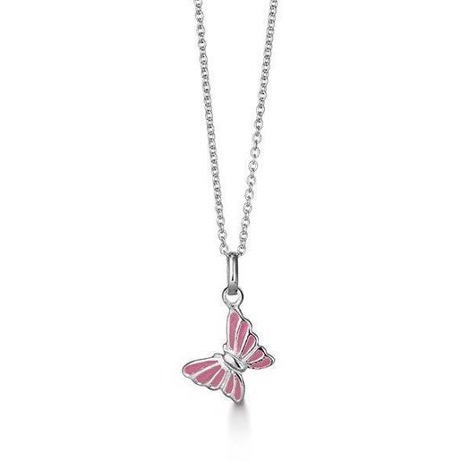 Aagaard børnehalskæde i sølv med lyserød sommerfugl 38 cm