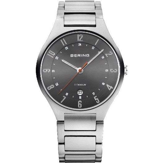 Bering herreur i titanium med grå urskive og sølv lænke