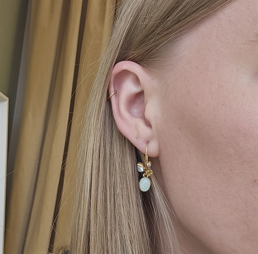 - Sten: Blå calcedon (8x6 mm), dråbeformet hydro aquamarin (3x5 mm), hvid topas (2 mm)