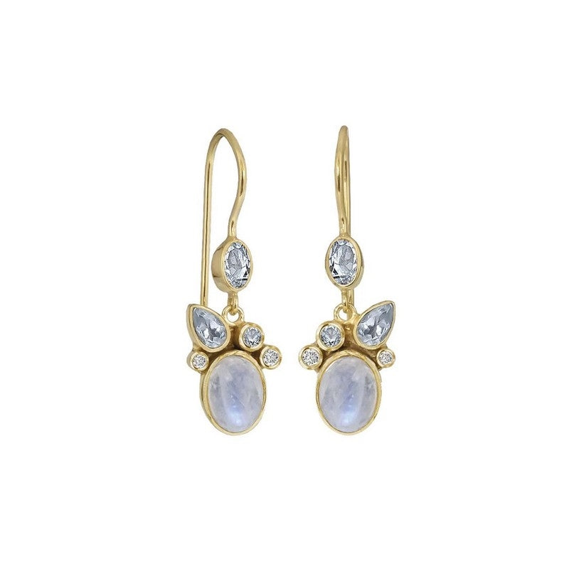 Blue Moon ørehængere fra Rabinovich i forgyldt sølv med topas, månesten og zirkonia