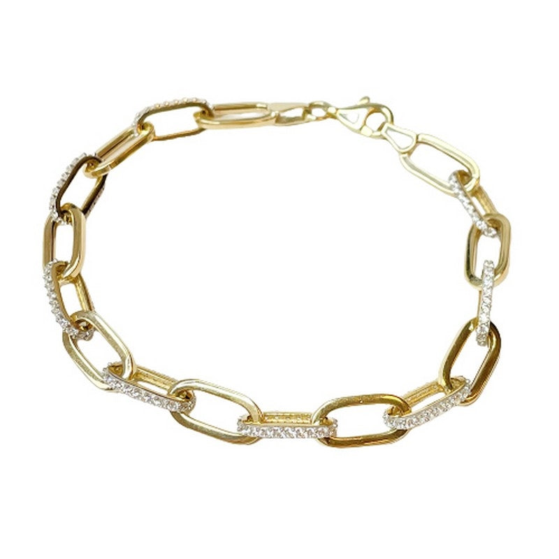 Dette armbånd er en del af Mads Z Essentials kollektionen og fremstillet i 8 karat guld. Designet er karakteriseret af store led, hvoraf hvert andet led er smykket med klare, tætsiddende zirkonia, der kaster et elegant spil af lys. Det raffinerede samspil mellem de blanke guldelementer og de funklende sten giver armbåndet et moderne og minimalistisk udtryk, der passer til enhver stil.