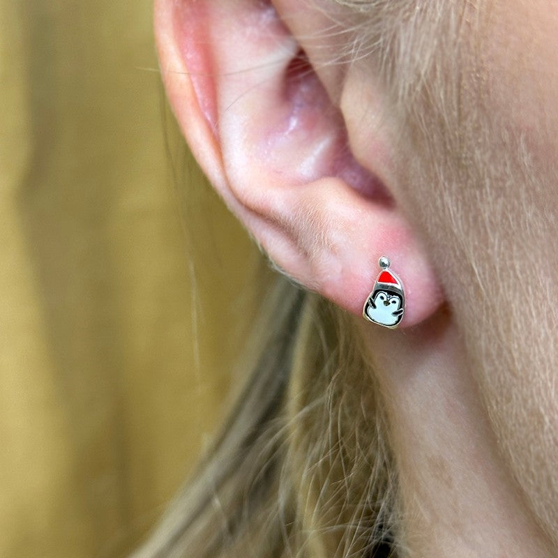 De charmerende øreringe er udført i 925 sterlingsølv og prydet med en sød lille pingvin i sort og hvid, som bærer en festlig rød nissehue, udført i kraftig emalje. Motivet er både humoristisk og elegant, og måler 5 x 9 mm – perfekt størrelse til både børn og voksne, der drømmer om et unikt julelook. Uanset om du skal til julefrokost, fejre advent eller bare ønsker at sprede glæde i hverdagen, vil disse juleøreringe tiltrække opmærksomhed og skabe et glad indtryk. Smykket passer særligt godt til dig, der ikke går på kompromis med hverken kvalitet eller kreativitet i julens accessories.