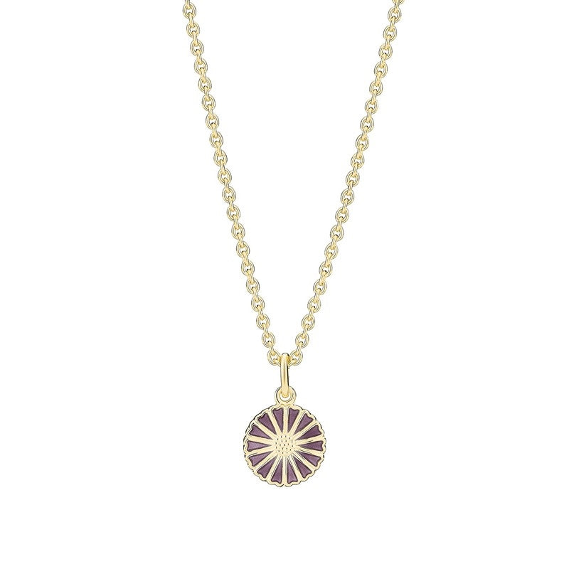 Lund Copenhagen marguerit halskæde i 24 kt forgyldt sølv med lilla emalje 45–48 cm