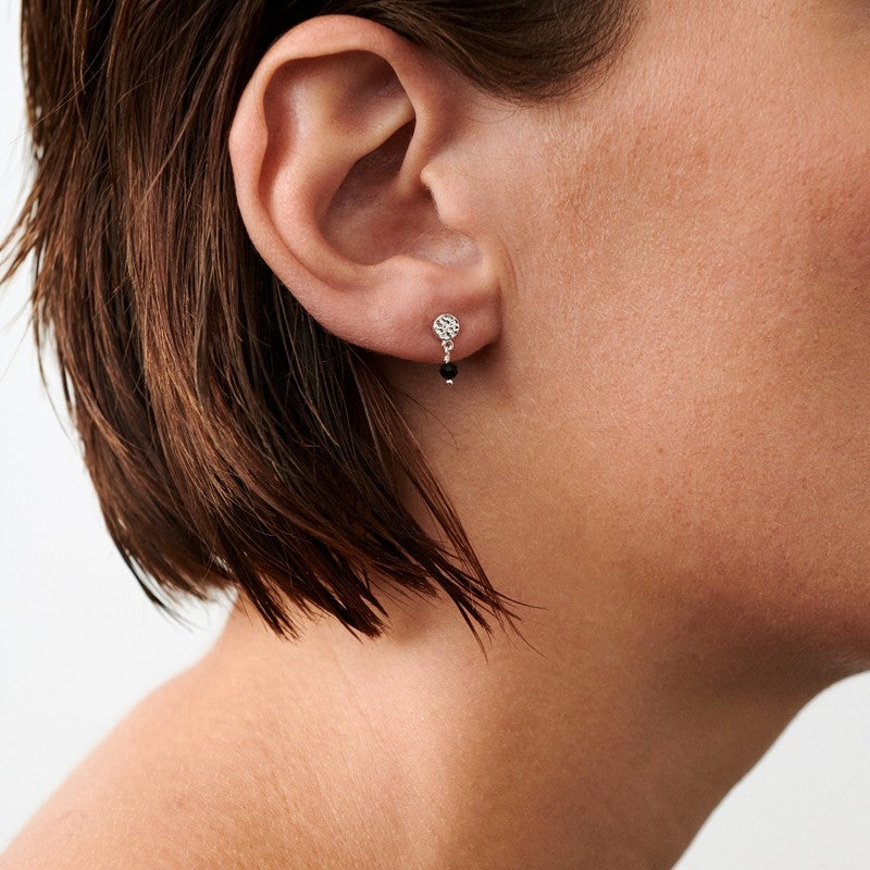 De diskrete ørestikker er udført i fint sølv, hvor en lille facetsleben sort onyxsten hænger graciøst under selve stikken. Kontrasten mellem sølvets kølige glans og onyxstenens intense mørke farve skaber en harmonisk balance, som udstråler både enkelthed og femininitet. Black Nature-ørestikkerne er inspireret af vinterens kontraster og naturens rå skønhed, hvilket giver smykket en dragende og tidløs charme. Det raffinerede design gør dem velegnede både til hverdagsbrug og festlige lejligheder – brug dem alene for et underspillet og moderne look, eller kombiner med andre smykker fra Pernille Corydon for et mere personligt udtryk. Perfekte til dig, der ønsker et smykke, som kan bruges på tværs af sæsoner og stilarter.