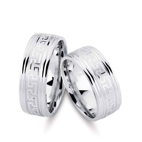 Imponerende Nuran vielsesringe i rhodineret sølv med græsk gravering, 8 mm