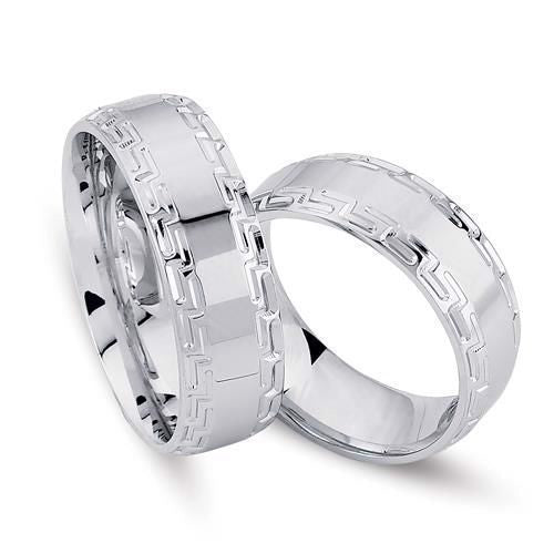 Du får her Nuran-vielsesringen i én smuk variant – udført i rhodineret sølv med elegant struktur langs kanten. Den klassiske bredde og det enkle design gør den til et sikkert valg, uanset personlig stil.
